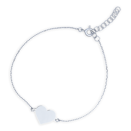 Pulseira em prata com chapa em forma de coração personalizável. Use o campo personalização para escrever o que pretende gravar (até 8 caracteres). O envio é realizado no prazo de dois dias úteis.