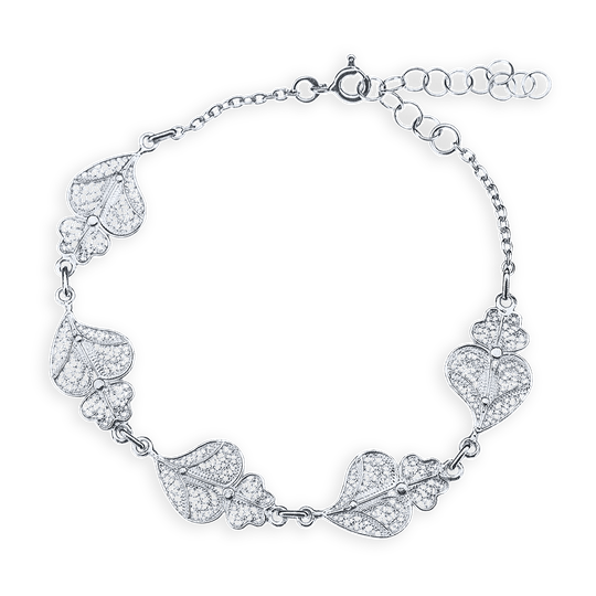 Pulseira ajustável em prata 925 com corações em filigrana. De referência histórica na joalharia tradicional portuguesa, a filigrana eleva o carisma da destreza manual.
