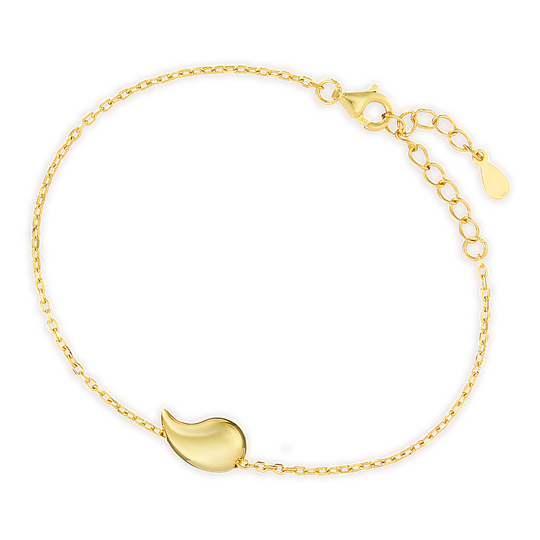 Pulseira em prata dourada com pendente em forma de gota com volume que corre no fio. Fio ajustável.