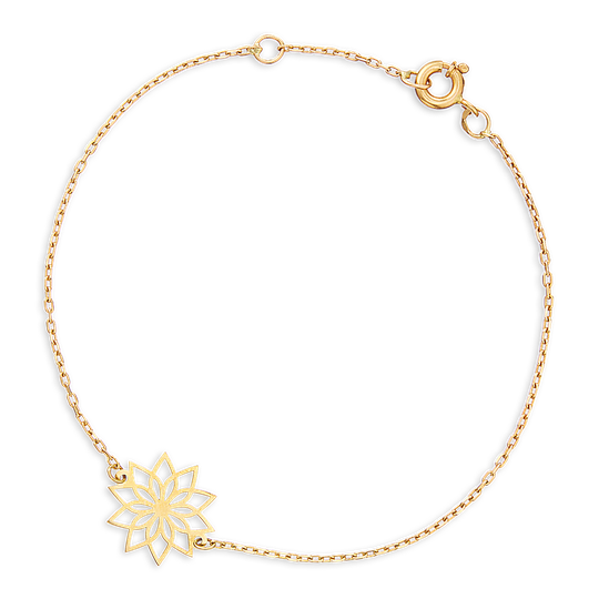Pulseira em ouro de 19,2 quilates com flor de lótus. A Dlight é uma marca exclusiva do Lugar da Jóia. Receba a sua jóia Dlight numa embalagem sustentável que contém sementes de camomila para plantar e cuidar.