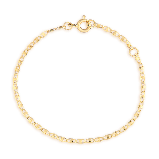 Pulseira de criança com malha fantasia em ouro de 9 quilates. Ajustável para um maior conforto do menino ou da menina.
