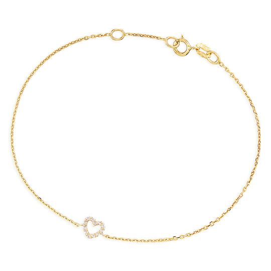Pulseira em ouro de 9 quilates com pequeno coração com zircónias.