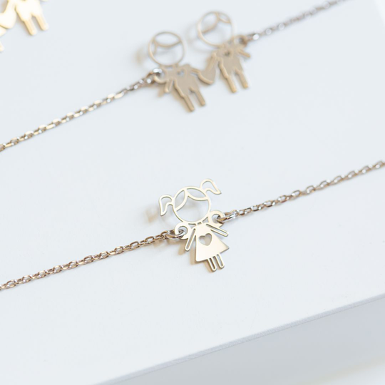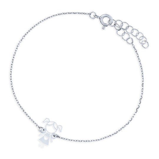 Pulseira em prata com menina recortada. Pulseira ajustável. Adorável presente para mães, tias, avós ou madrinhas.Original e exclusivo Lugar da Jóia.