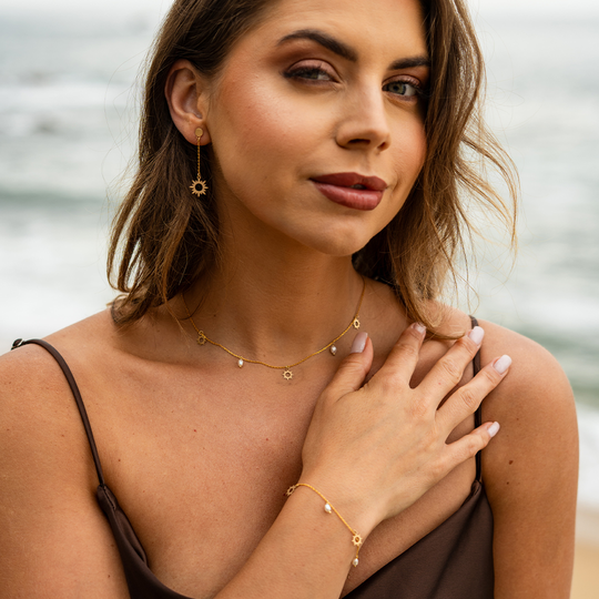 Essência – Uma coleção original Dlight. Inspirada no sol, no mar e na terra, traz jóias em prata dourada e pérolas de água doce que celebram a beleza natural em peças leves, luminosas e intemporais. Receba a sua jóia Dlight numa embalagem sustentável, com