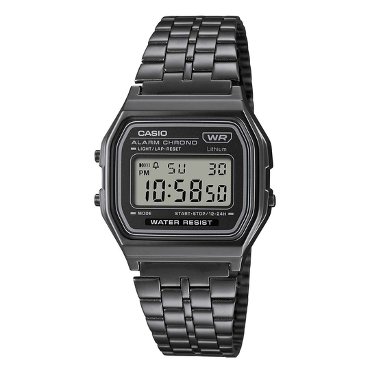 | Principais funções | Casio® a158 - 12 horas, dia da semana, dia do mês, cronómetro com medição até 59'59.99'' nos modos de tempo decorrido, tempo parcial, tempos de 1.º e 2.º lugares. alarme diário e s |