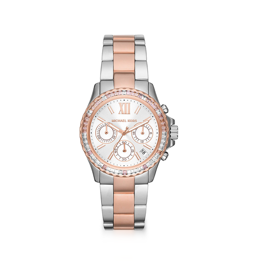 | Bracelete | Em aço inoxidável rosa e prateado |