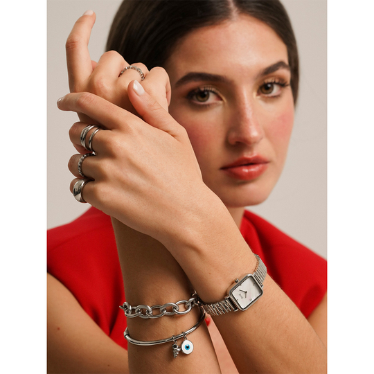| Bracelete | Em Aço Prateado |