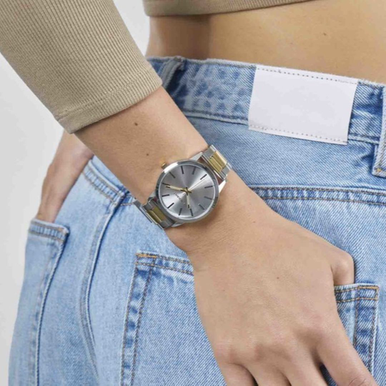 Relógio Radiant Mykonos 38Mm Silver Dial Bitone Gold Bra